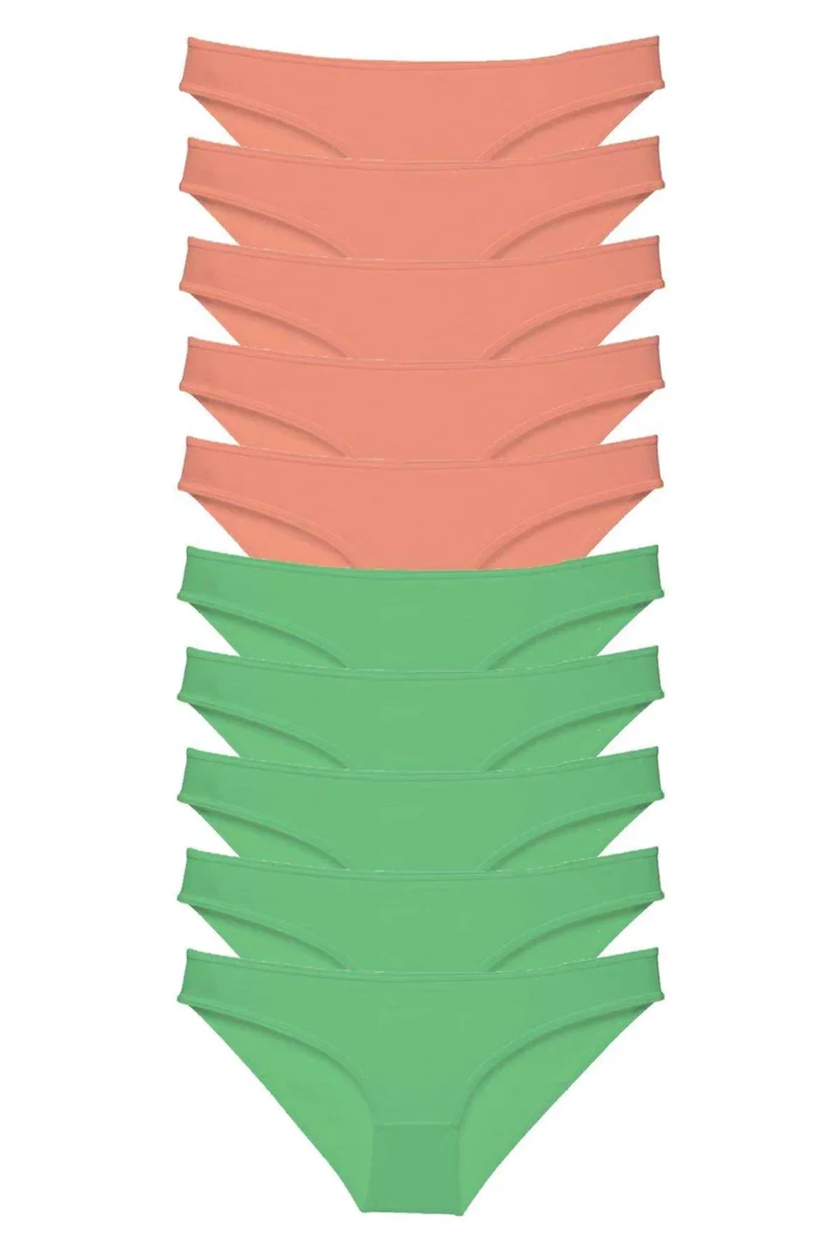 10 adet Eko Set Likralı Kadın Slip Külot Pudra Yeşil