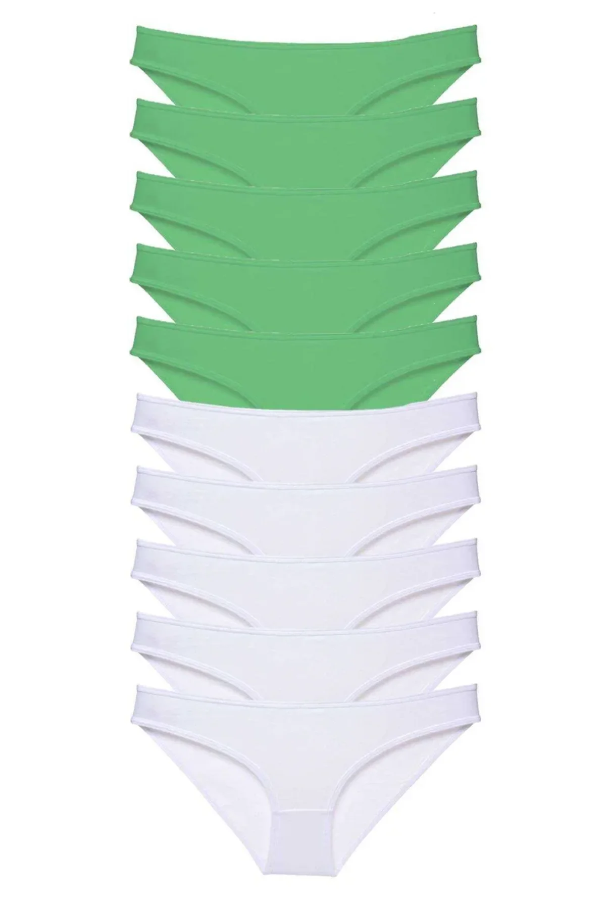 10 adet Süper Eko Set Likralı Kadın Slip Külot Yeşil Beyaz