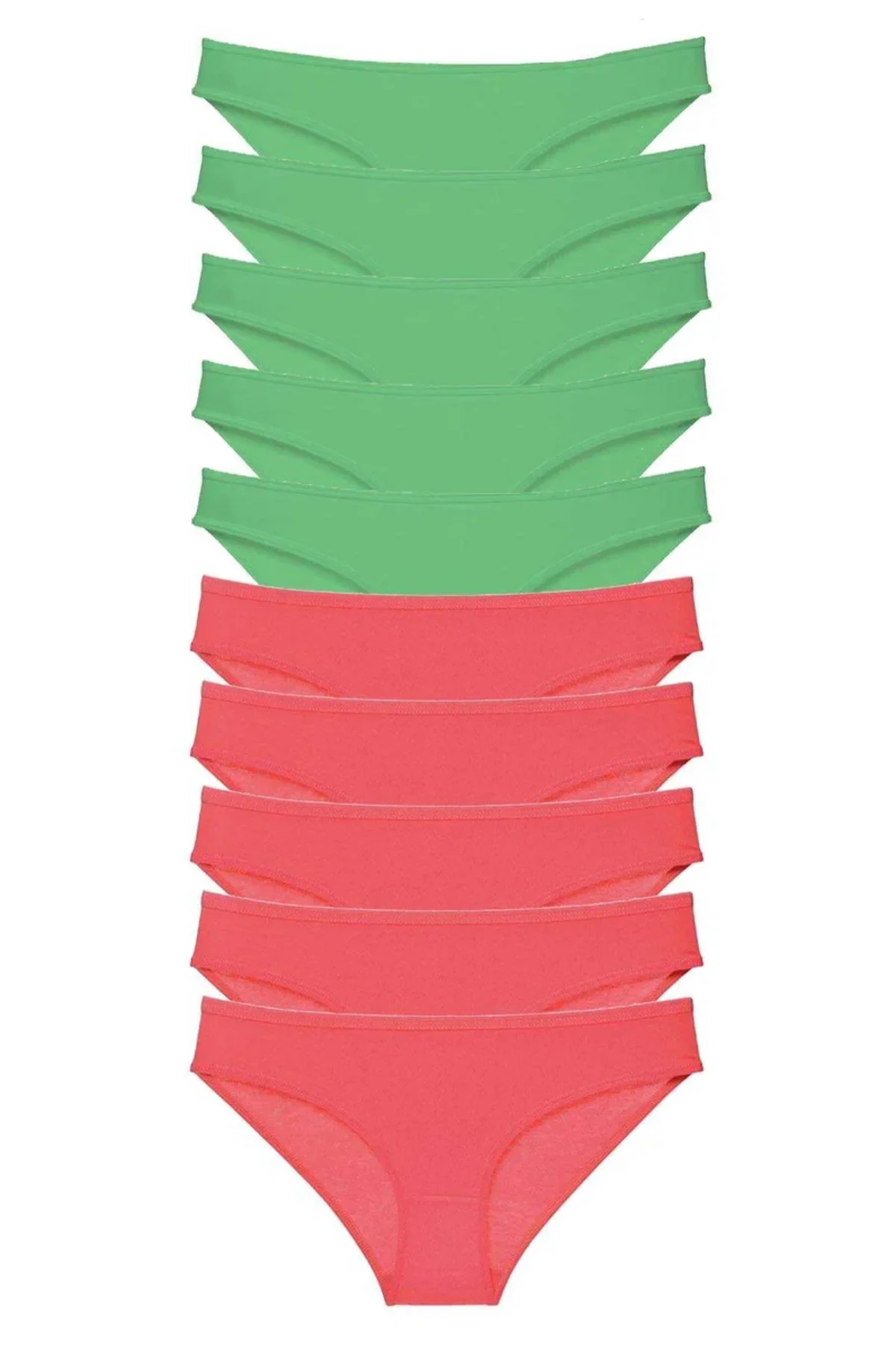 10 adet Eko Set Likralı Kadın Slip Külot Yeşil Fuşya