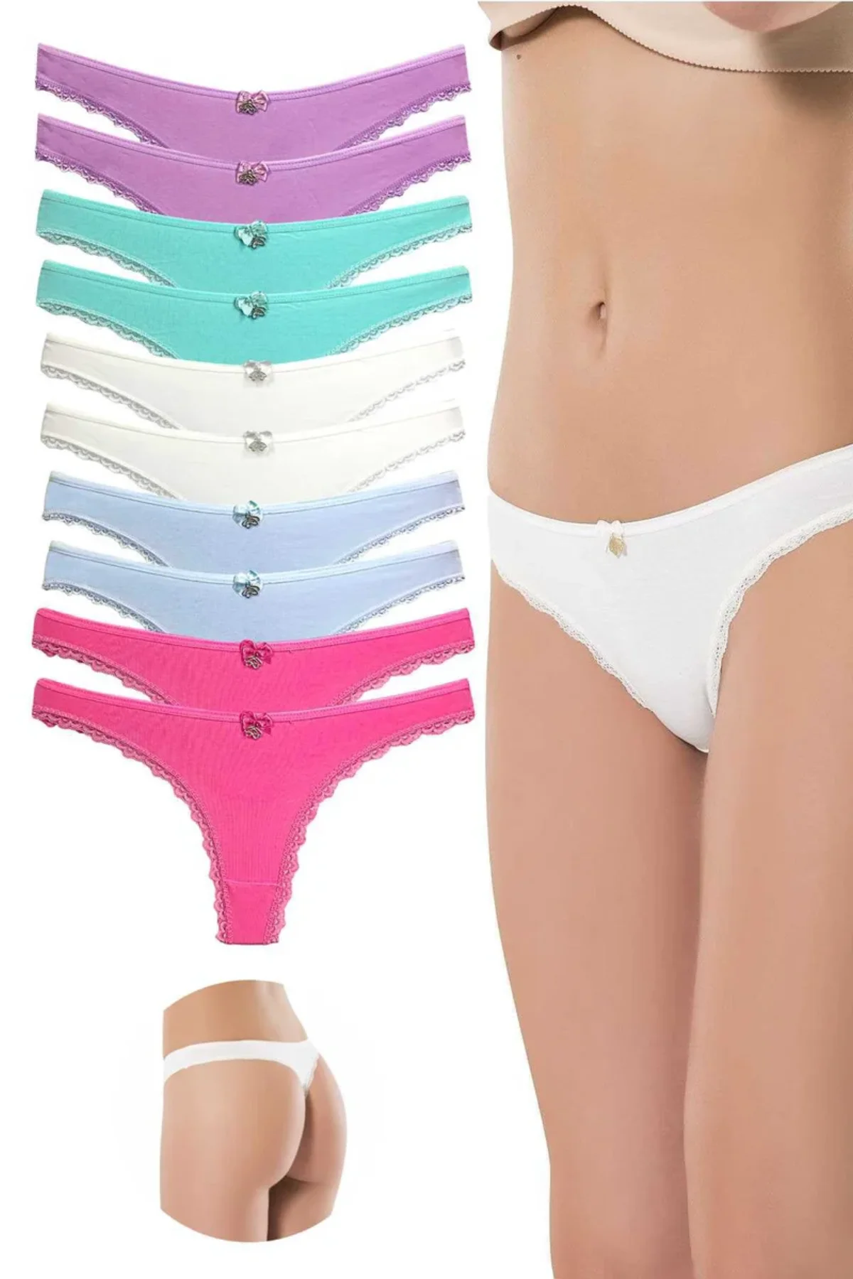 10 Adet Pamuklu Kadın Klasik Dantelli String Tanga
