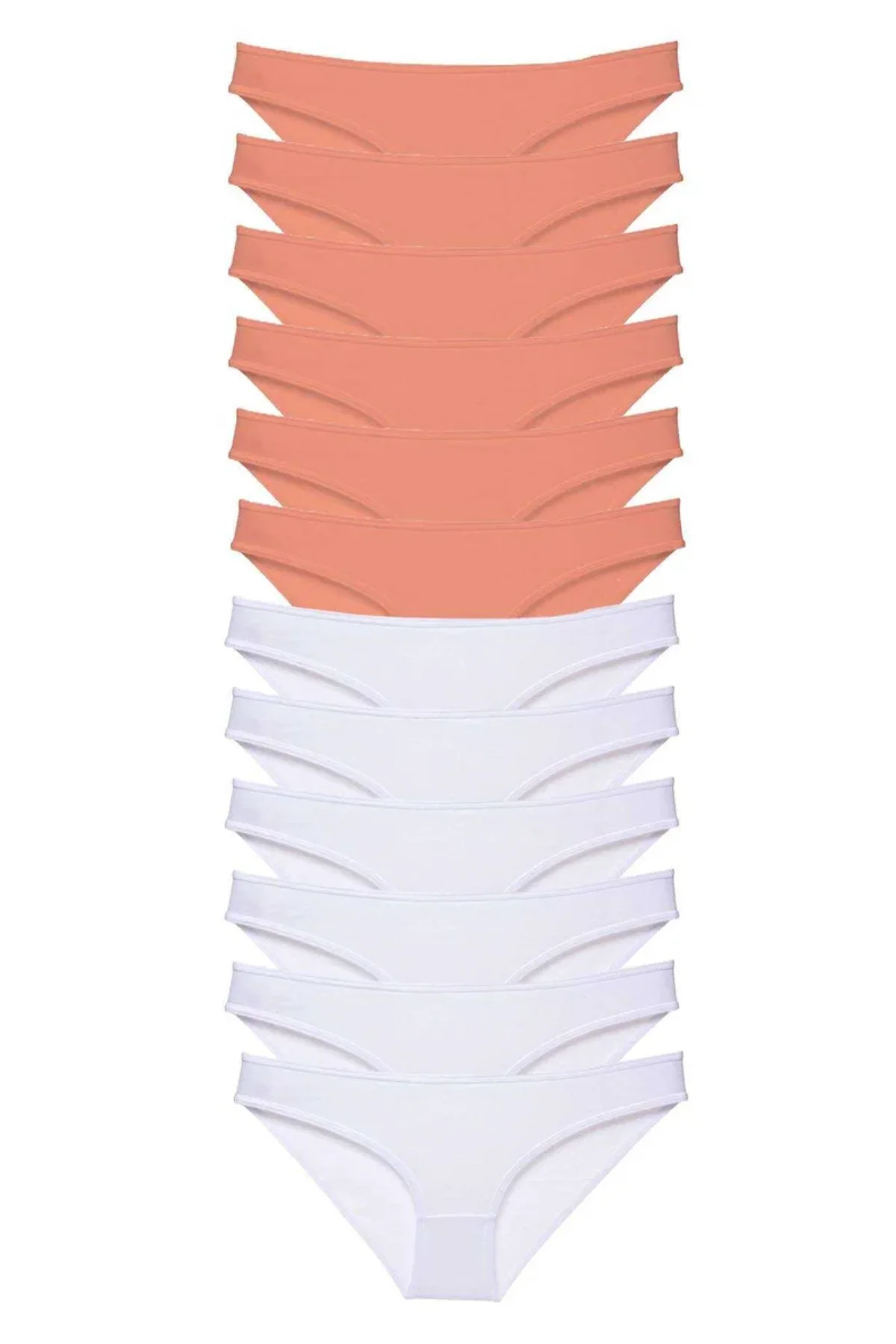 12 adet Süper Eko Set Likralı Kadın Slip Külot Pudra Beyaz