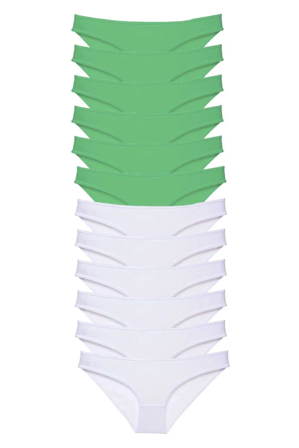 12 adet Süper Eko Set Likralı Kadın Slip Külot Yeşil Beyaz