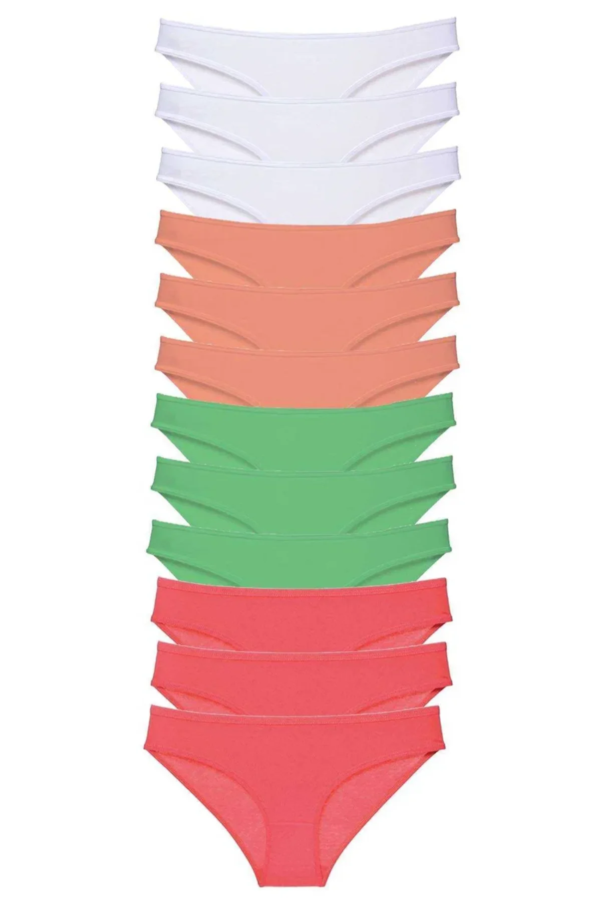 12 adet Süper Eko Set Likralı Kadın Slip Külot Beyaz Pudra Yeşil Fuşya