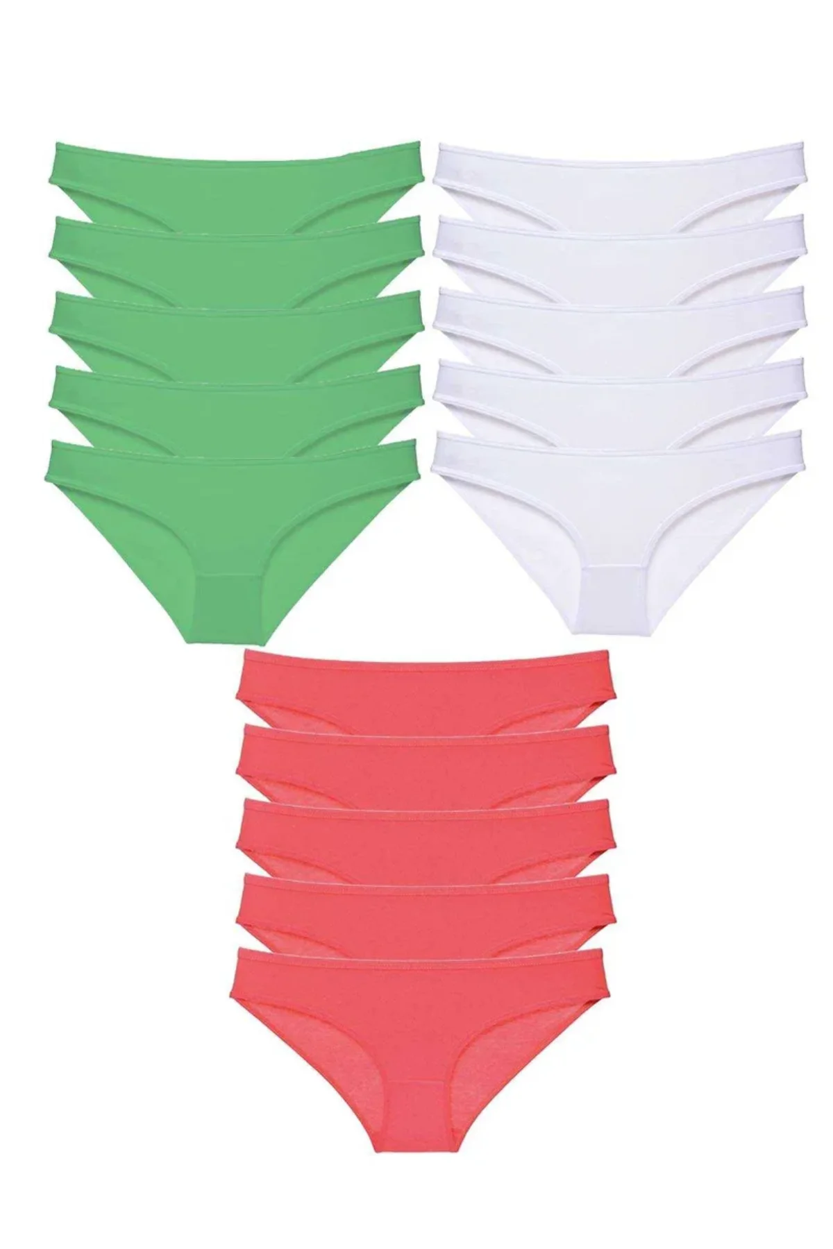 15 adet Süper Eko Set Likralı Kadın Slip Külot Yeşil Beyaz Fuşya