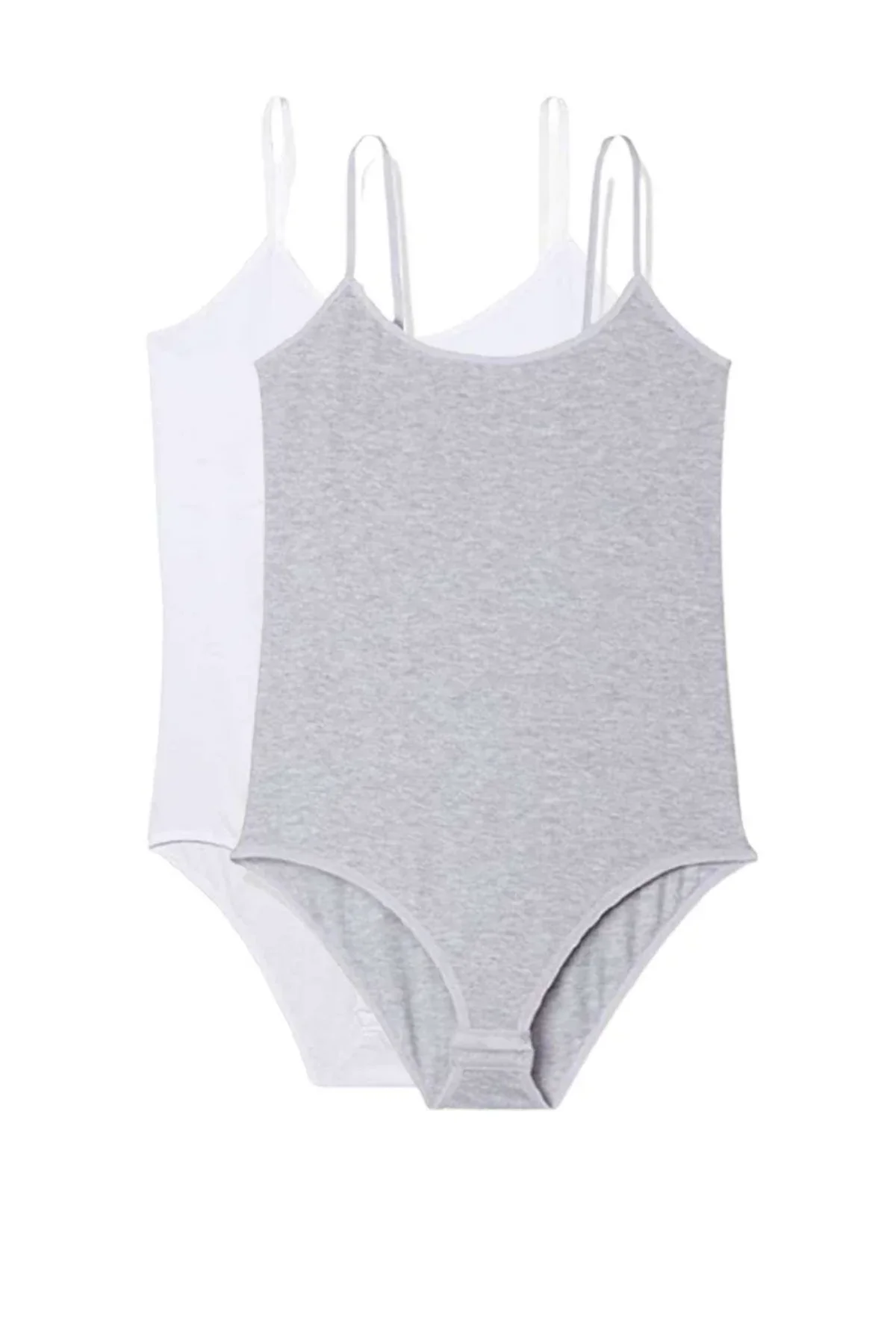 2 Adet İp Askılı Kadın Çıtçıtlı Body Beyaz ve Gri