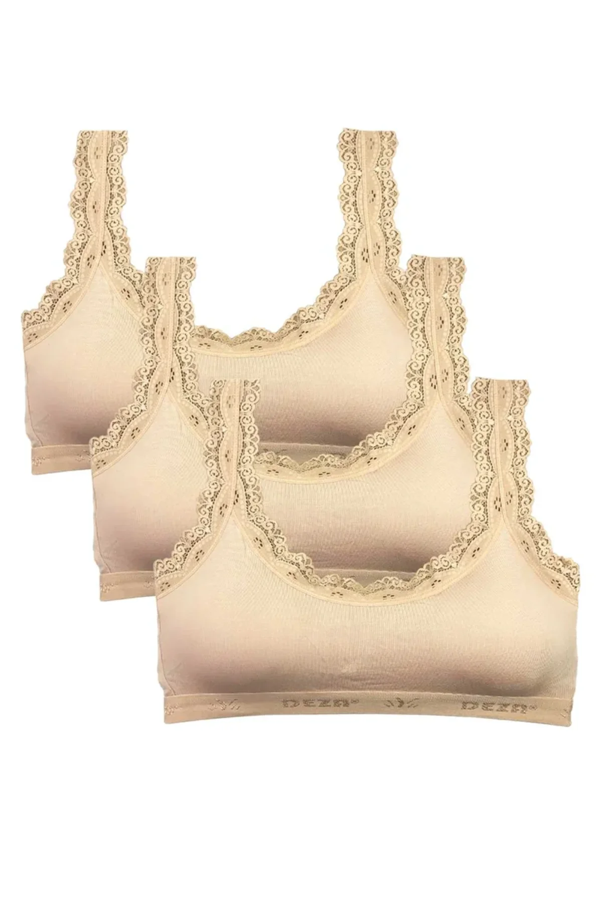 3 Adet Dantel Nakış İşlemeli Pedli Bambu Kadın Büstiyer Ten