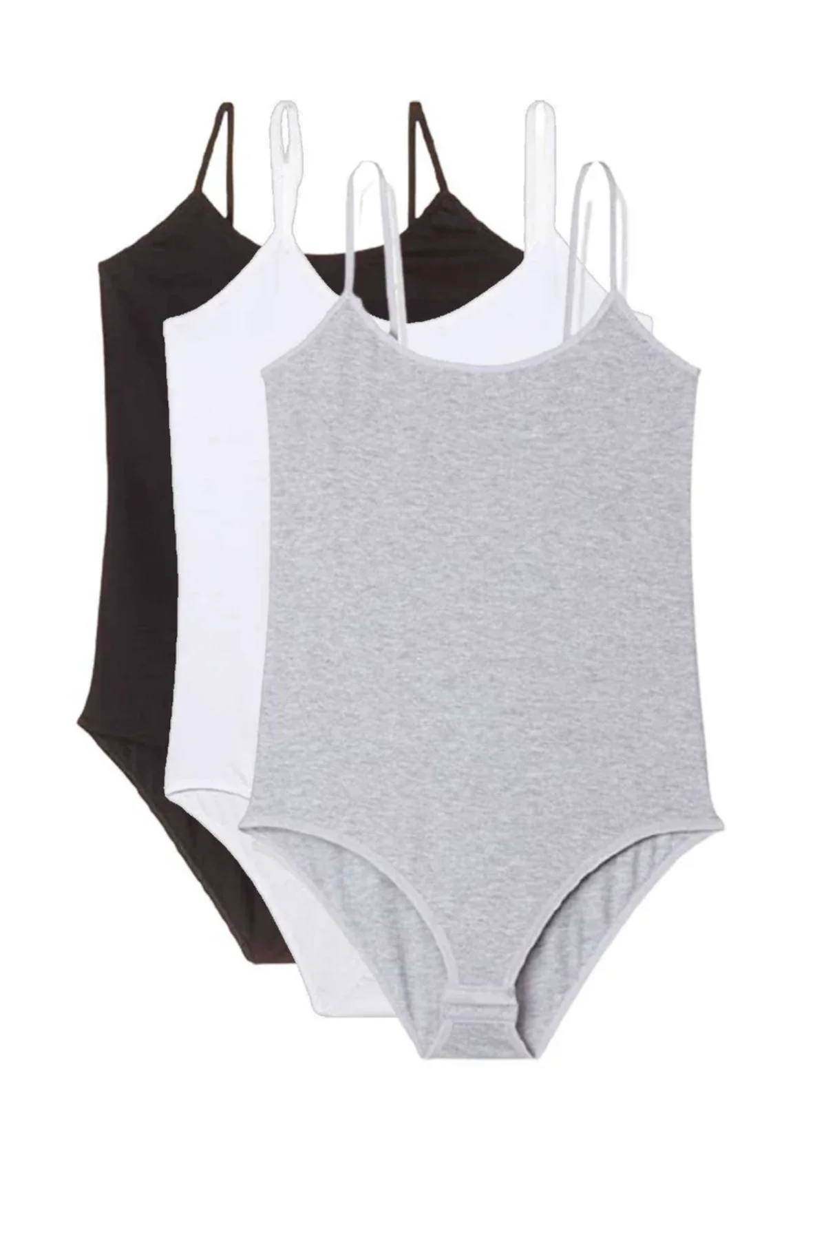 “3 Adet İp Askılı Kadın Çıtçıtlı Body Siyah Beyaz Gri” için yorum yapan ilk kişi siz olun
