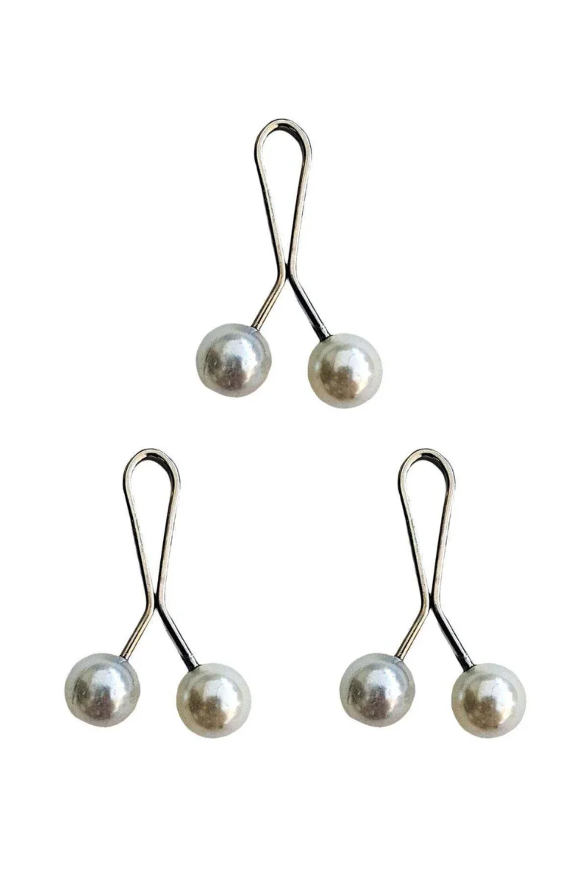 3 Adet Tesettür Eşarp ve Şal Klipsi İnci Beyaz