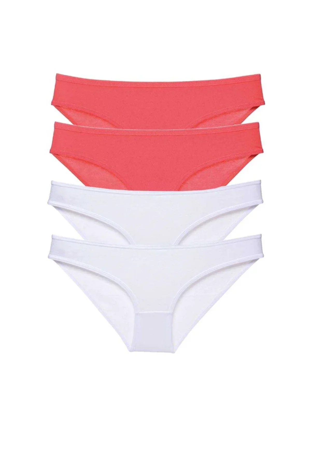 4 adet Süper Eko Set Likralı Kadın Slip Külot Fuşya Beyaz