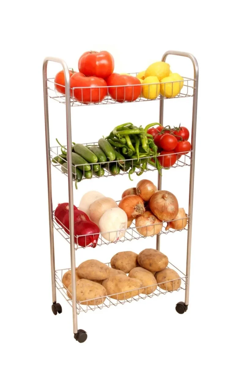 4 Katlı Metal Sebze-Meyve Çok Amaçlı Raf Tekerlekli