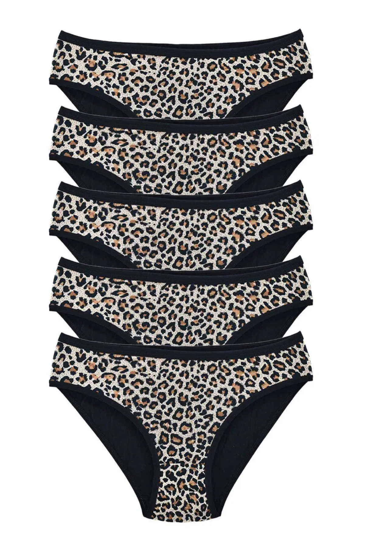 5 Adet Leopar Desenli Likralı Yumuşak Dokulu Kadın Slip Külot