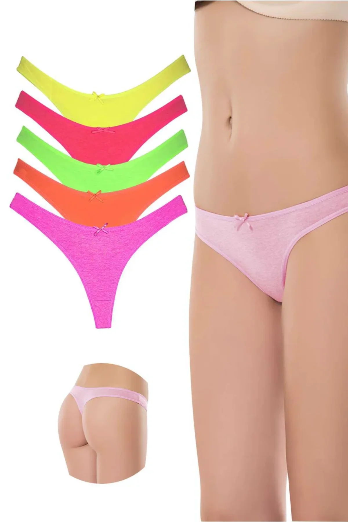 5 Adet Pamuklu Kadın Klasik Tanga Neon Renkler