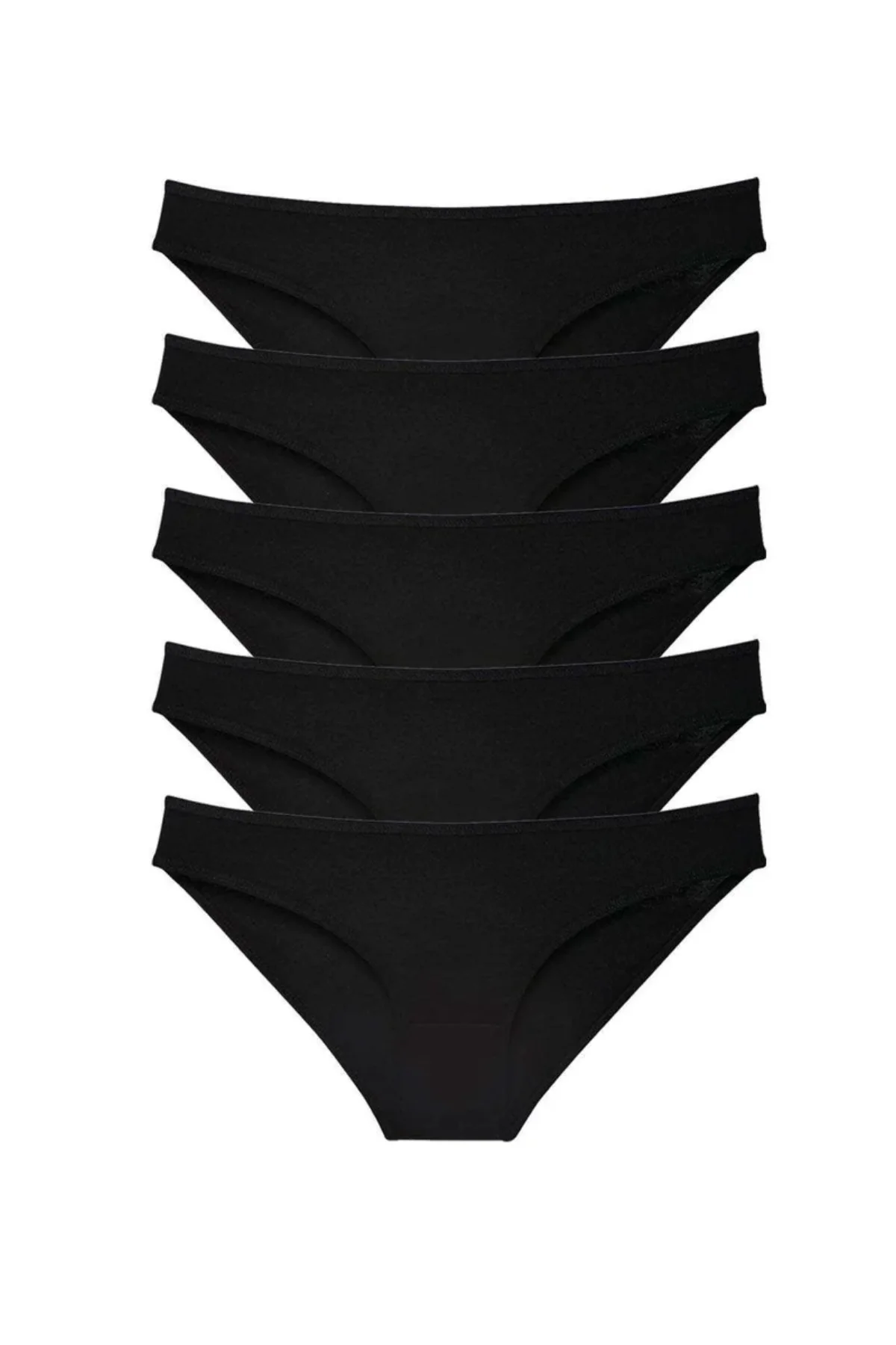 5 adet Süper Eko Set Likralı Kadın Slip Külot Siyah