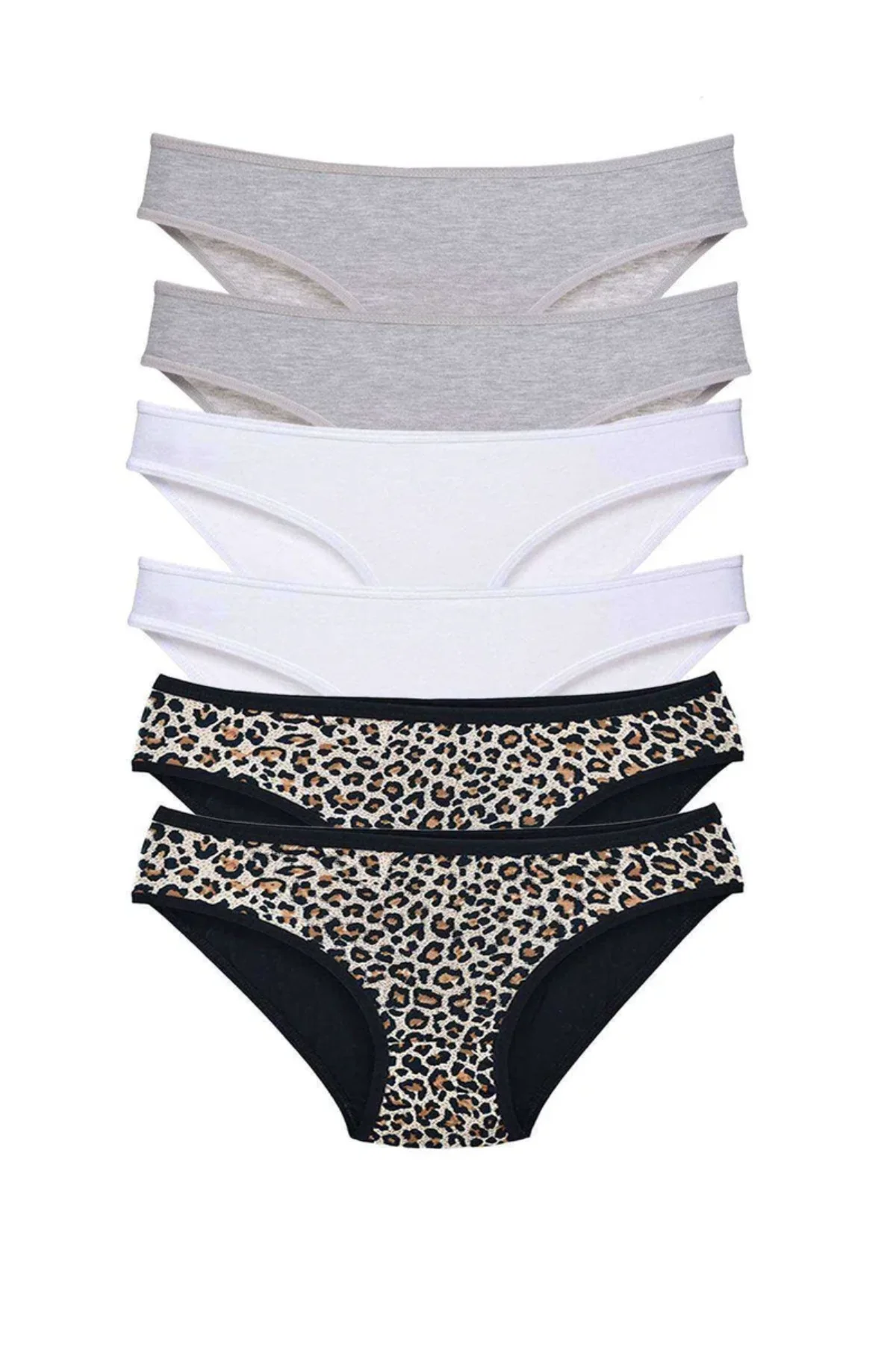 6 Adet Likralı Kadın Slip Külot Leopar Gri Beyaz