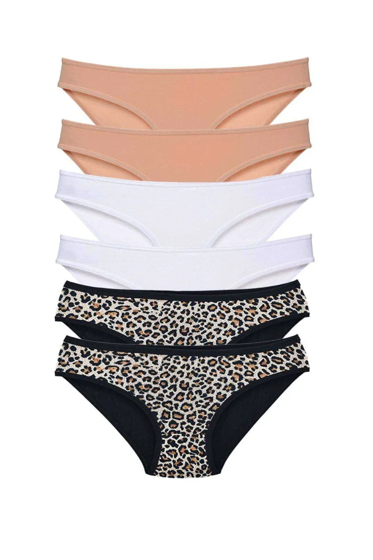 6 Adet Likralı Kadın Slip Külot Leopar Ten Beyaz