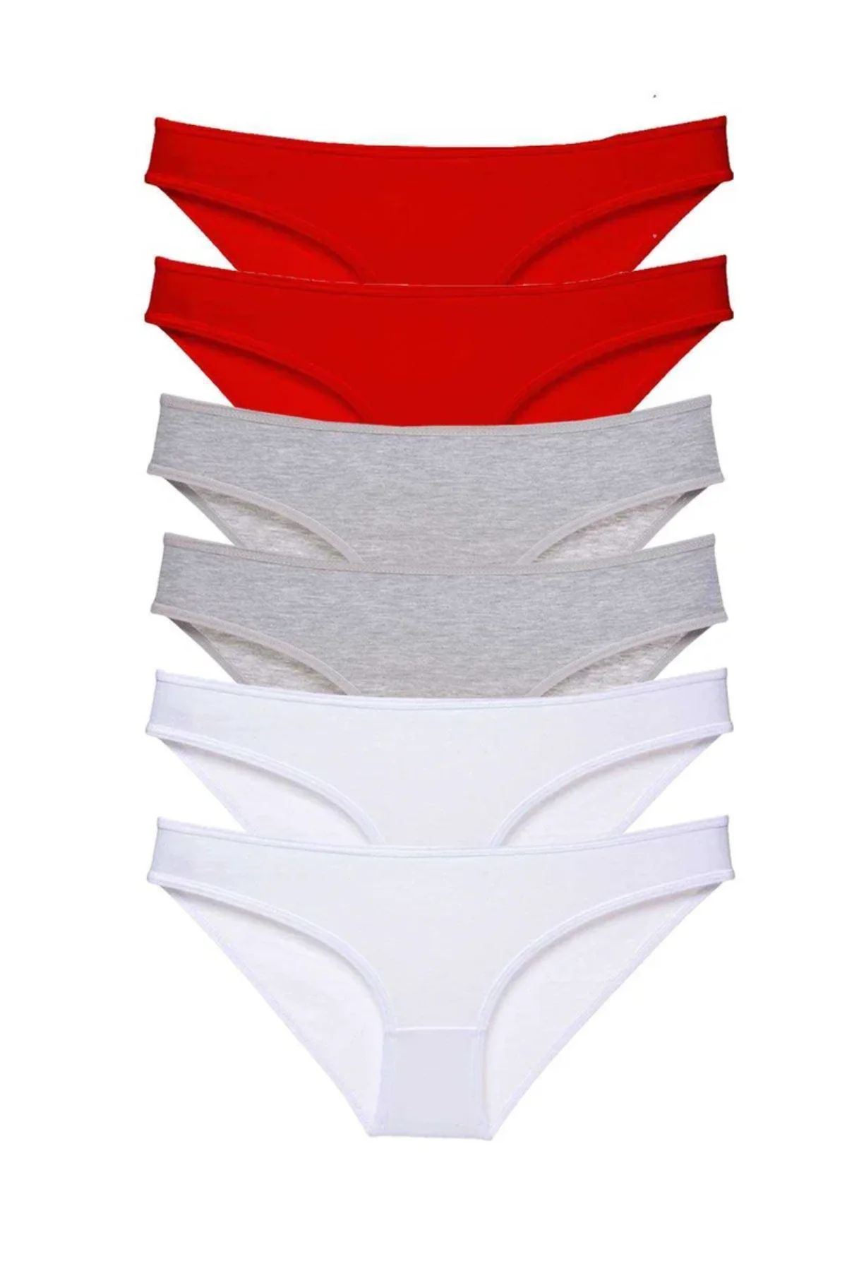 6 adet Süper Eko Set Likralı Kadın Slip Külot Kırmızı Gri Beyaz