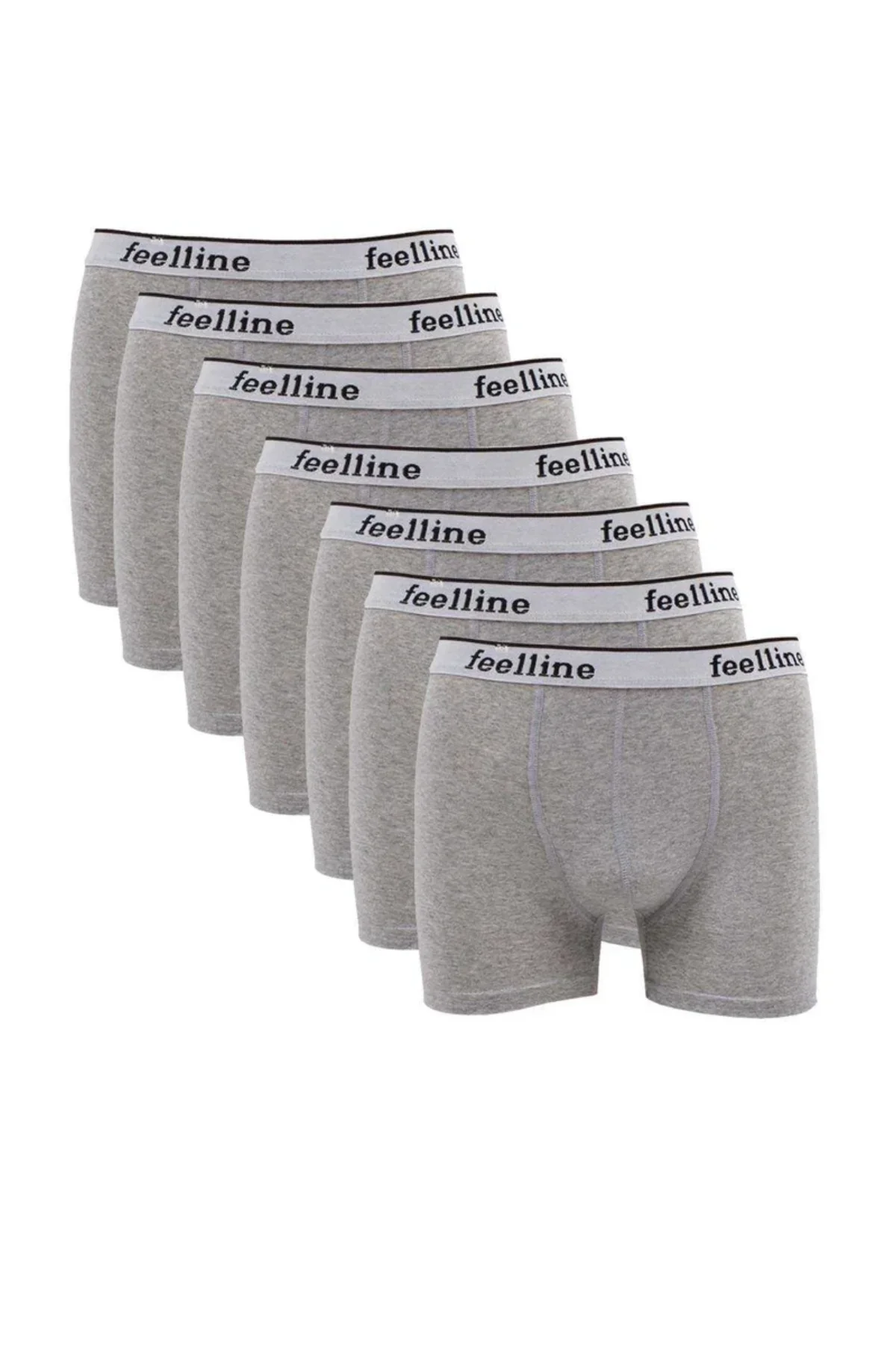 7 adet Feelline Gri Pamuklu Doğal Likralı Erkek Boxer