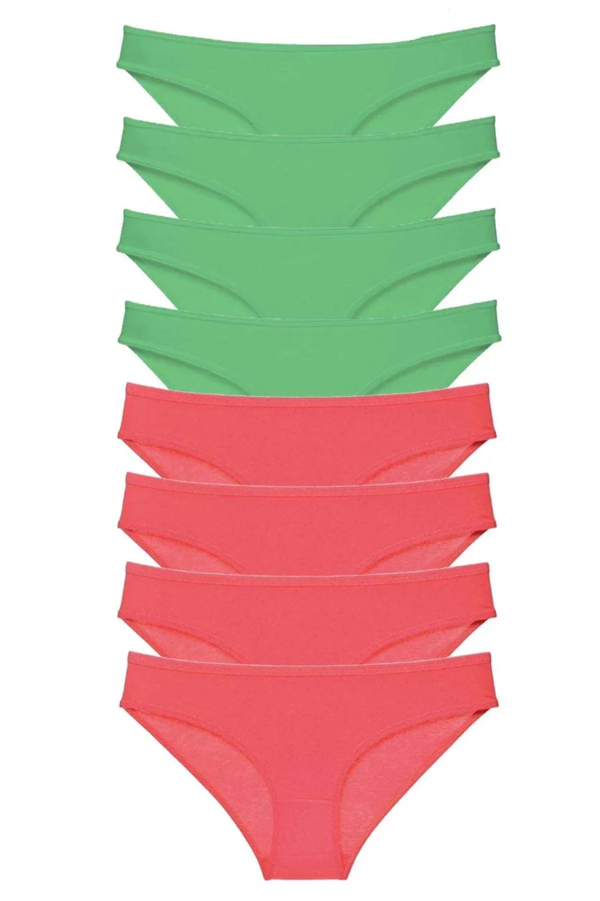 8 adet Süper Eko Set Likralı Kadın Slip Külot Yeşil Fuşya
