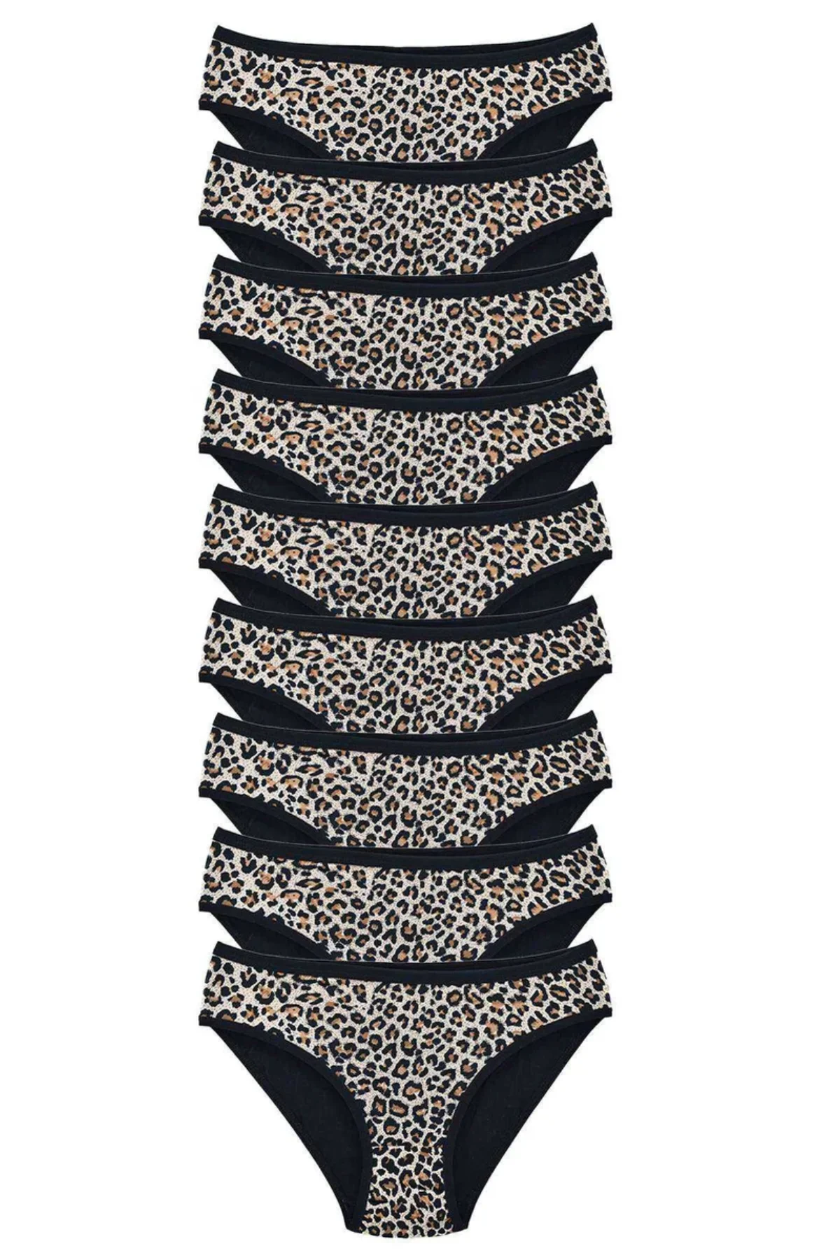 9 Adet Leopar Desenli Likralı Yumuşak Dokulu Kadın Slip Külot