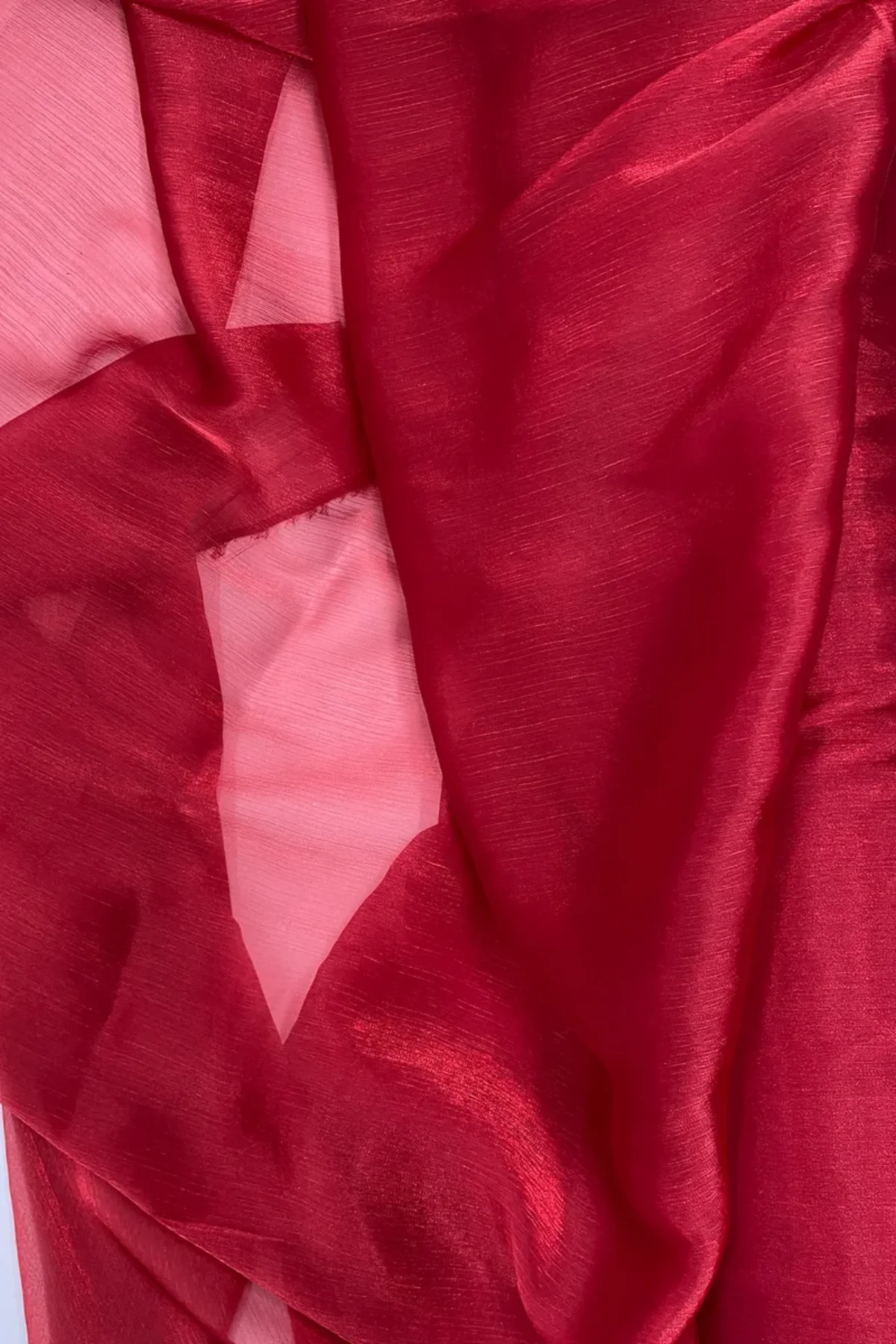 Abiye Elbiselik Işıltılı Tül Cam Organze Kumaş Kırmızı