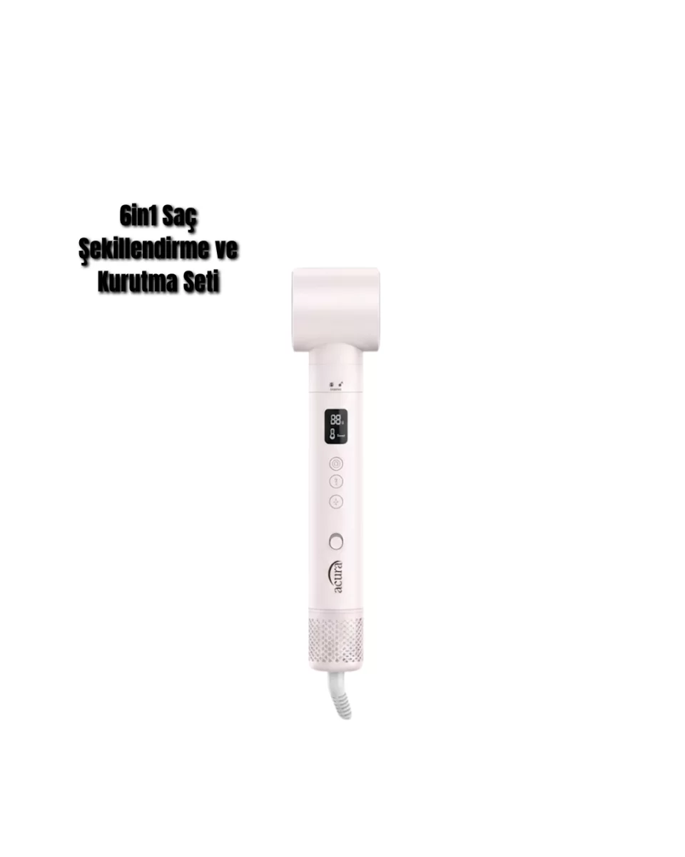 Acura AC-95 Airstyle 6-in-1 Saç Şekillendirme Seti, evde profesyonel saç bakım ve şekillendirme deneyimi yaşamak isteyenler için tasarlanmıştır. Yüksek performanslı motoru, akıllı ısı yönetimi ve çoklu başlıkları ile saç bakımını zahmetsiz hale getirir. 110.000 rpm motor hızı, güçlü hava akışı sunarak saçların hızlı ve etkili şekilde kurumasını sağlar. Negatif iyon teknolojisi, saç tellerinin nemini koruyarak daha sağlıklı ve parlak bir görünüm kazandırır. Elektriklenmeyi azaltır ve saçın daha pürüzsüz görünmesine yardımcı olur. LCD ekranlı kontrol paneli, sıcaklık ve hız ayarlarını net şekilde görmenizi sağlar. 3 kademeli sıcaklık ve hız ayarı ile saç tipinize uygun kişisel ayarlamalar yapabilirsiniz. Akıllı sıcaklık kontrol sistemi, saçın aşırı ısınmasını önler. Set içeriğinde bulunan farklı başlıklar, farklı saç stilleri oluşturmanıza olanak tanır. Bukle başlıkları, hacimlendirici fırça ve düzleştirme fırçası ile çok yönlü kullanım sunar. Soğuk üfleme özelliği, şekli sabitleyerek kalıcı sonuçlar elde etmenizi sağlar. Hafif ve ergonomik tasarımı, uzun süreli kullanımda konfor sağlar. 2 yıl garanti güvencesiyle sunulan Acura AC-95 Airstyle, saç bakımına önem veren kullanıcılar için güvenilir ve etkili bir tercihtir.