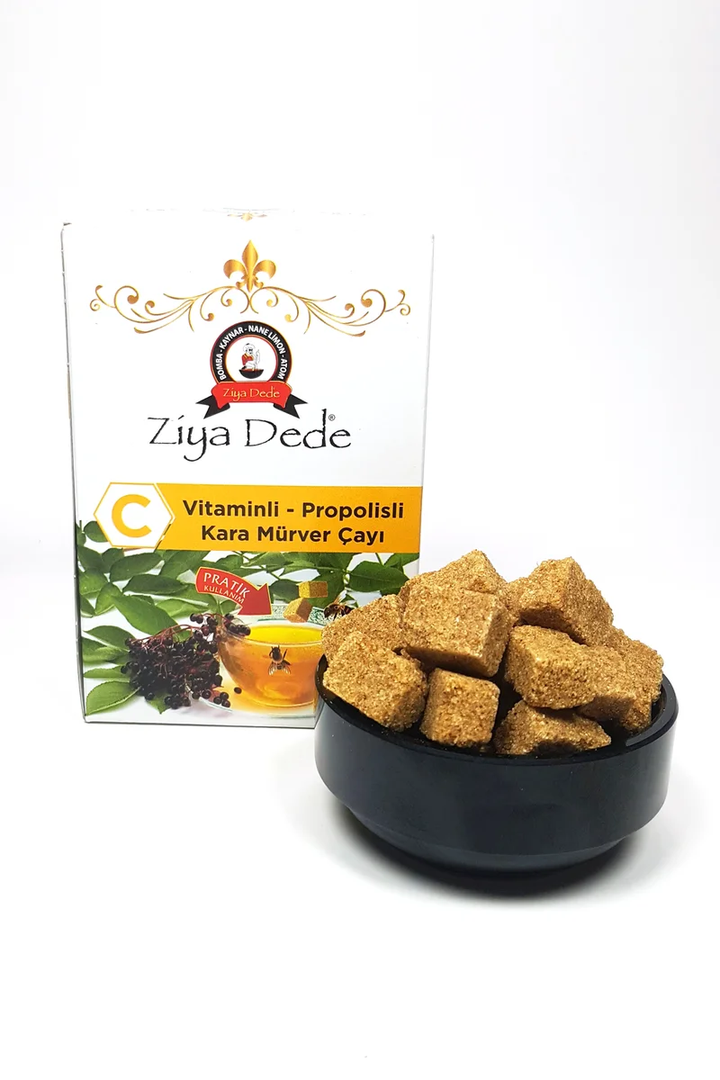 | Ziya Dede C Vitaminli Kara Mürver Çayı Vitaminli Propolisli 150 Gr İçeriği : Tarçın, Zencefil, Karanfil, Yeni Bahar, Karabiber, Propolis, Zerdeçal, Pancar Şekeri, Kara Mürver, C Vitamini, Su Not: Ürün küp şeklindedir. Kullanım Şekli: Kaynamış bir fincan su içeriğine 2-3 küp atınız. Karıştırarak içiniz. |