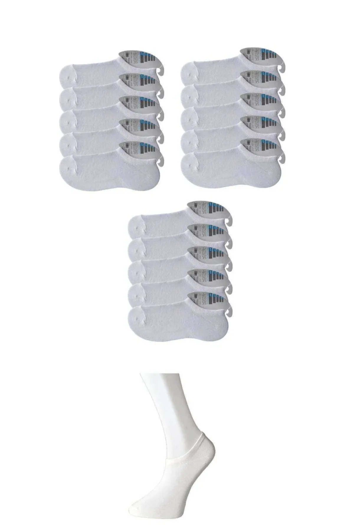 Beyaz Erkek Görünmez Çorap 15 çift