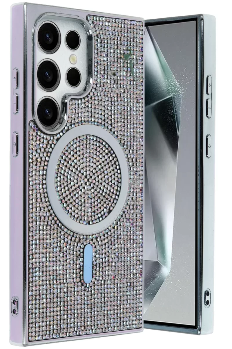 Newface Samsung Galaxy S25 Kılıf Joke Simli Magneticsafe Kılıf - Derin Mor