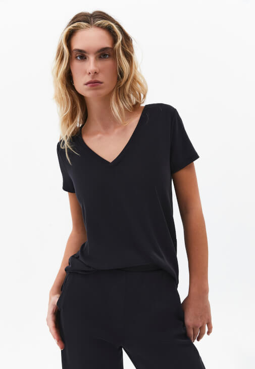 Modal V Yaka Tişört – İpeksi Konfor, Keskin Hatlar