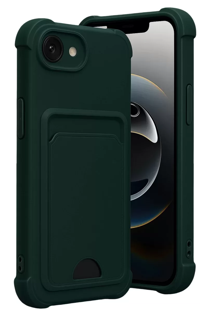 Newface Apple iPhone 16E Kelvin Kartvizitli Silikon – Koyu Yeşil