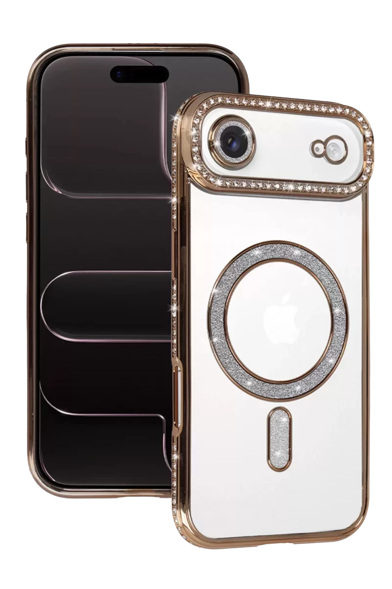 Newface Apple İphone 17 Air Joke Simli Magneticsafe Kılıf – Gold