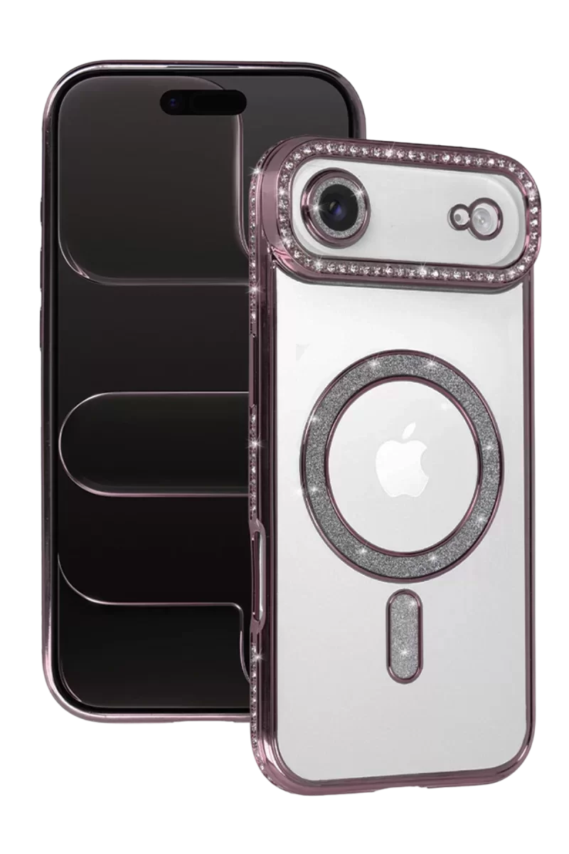 Newface Apple İphone 17 Air Joke Simli Magneticsafe Kılıf – Pembe