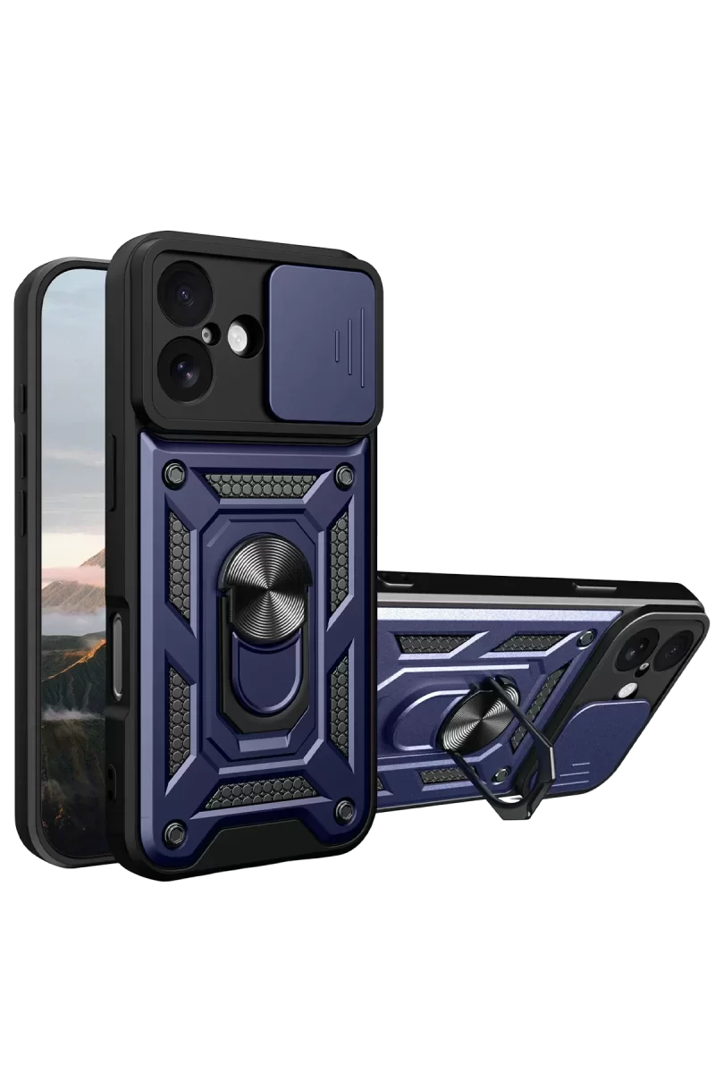 Newface Apple İphone 17 Air Montreal Yüzüklü Silikon Kapak - Lacivert