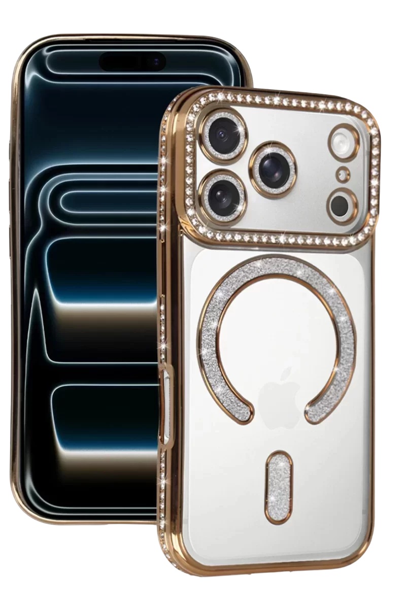 Newface Apple İphone 17 Pro Joke Simli Magneticsafe Kılıf – Gold