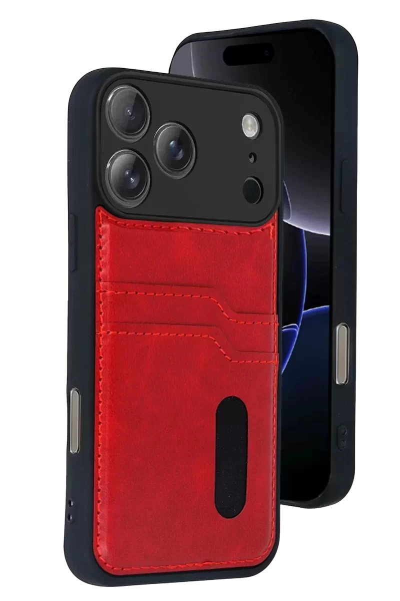 Newface Apple iPhone 17 Pro Sara Kartvizitli Deri Kılıf – Kırmızı