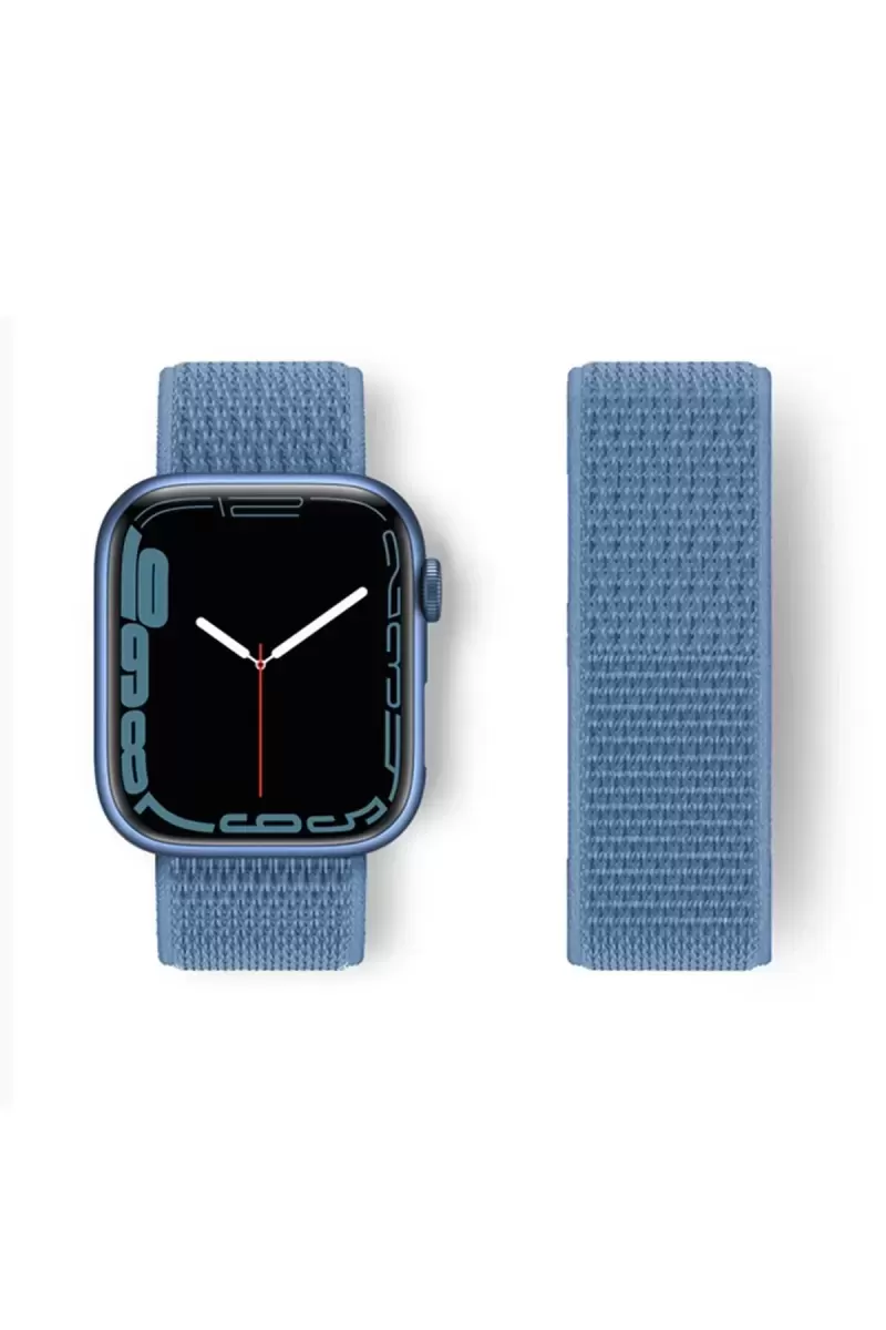 Newface Apple Watch 38mm Hasırlı Cırtcırtlı Kordon – Mavi