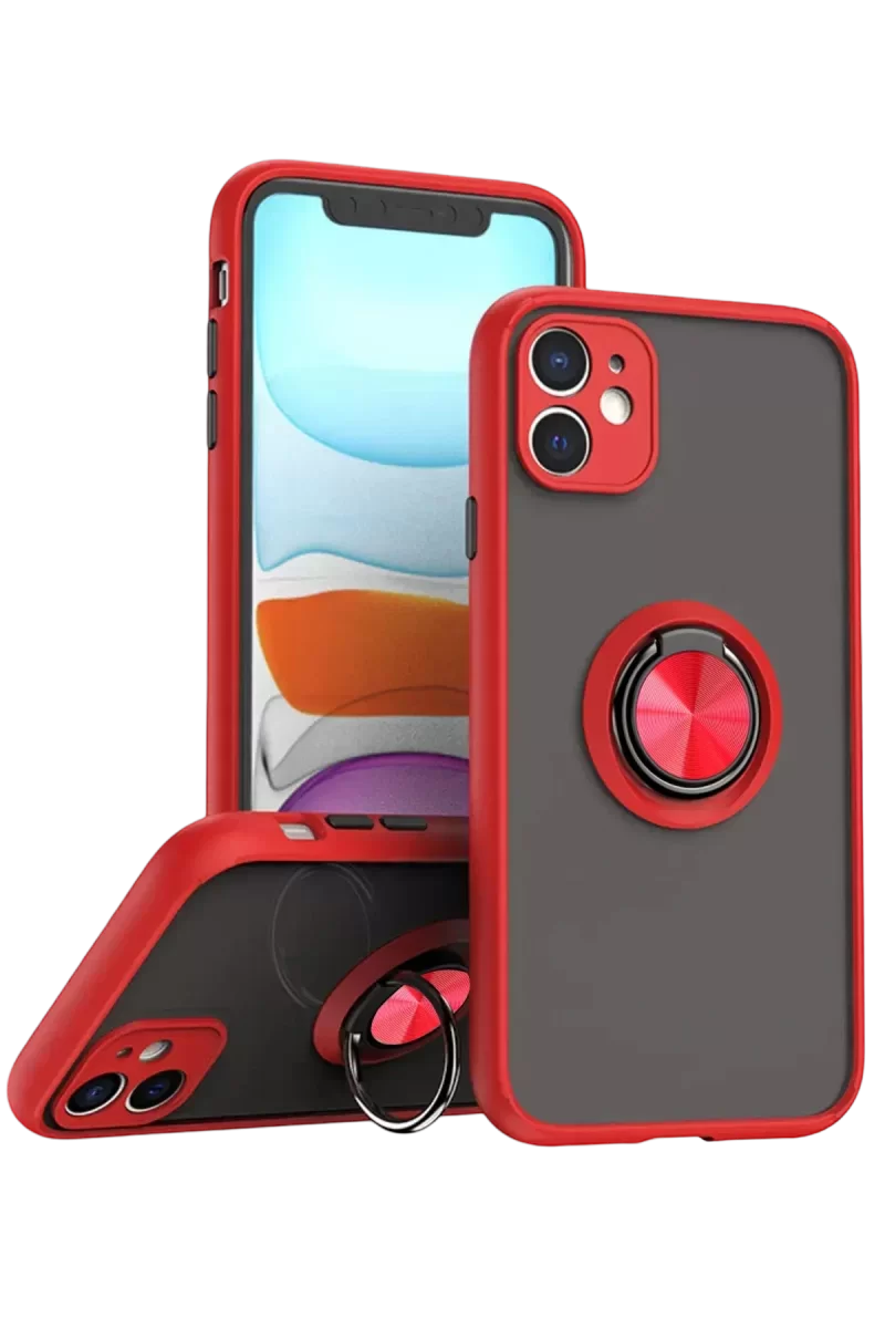Newface İphone 11 Kılıf Montreal Yüzüklü Silikon Kapak – Kırmızı