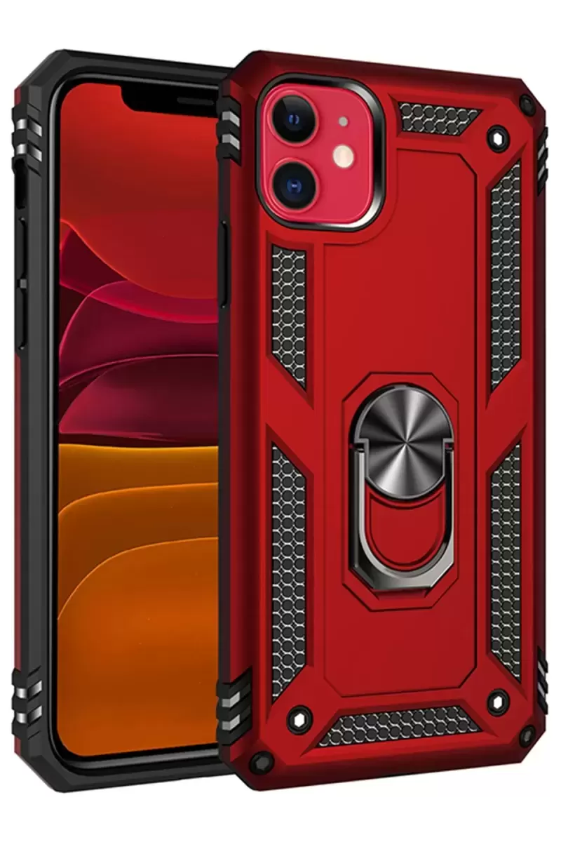Newface İphone 11 Kılıf Sofya Yüzüklü Silikon Kapak – Kırmızı