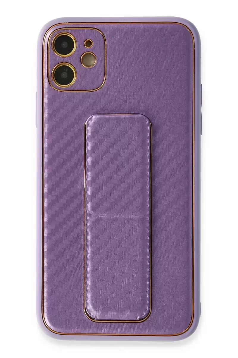 Newface İphone 12 Kılıf Coco Karbon Standlı Kapak – Mor