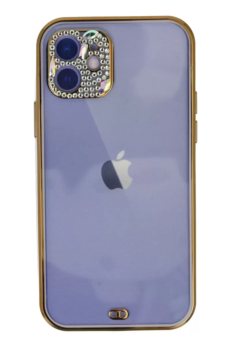 Newface İphone 12 Kılıf Liva Taşlı Silikon – Mor