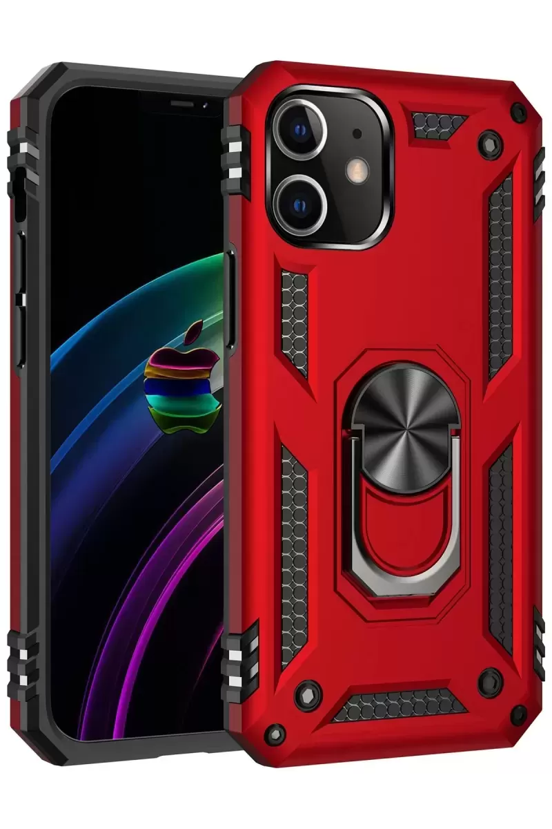 Newface İphone 12 Mini Kılıf Sofya Yüzüklü Silikon Kapak – Kırmızı