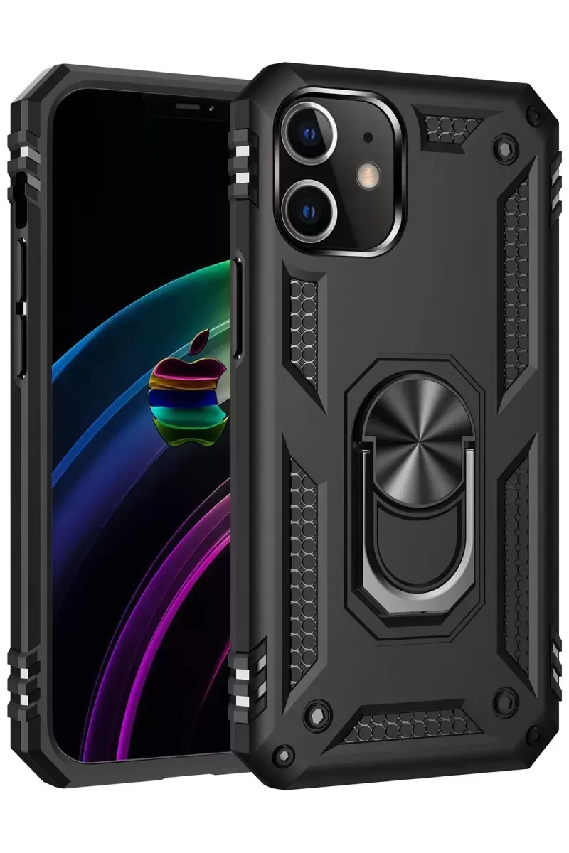 Newface İphone 12 Mini Kılıf Sofya Yüzüklü Silikon Kapak – Siyah