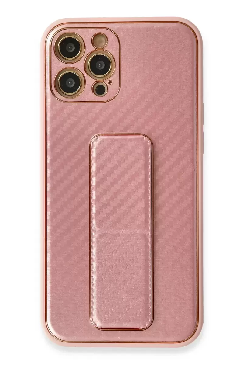 Newface İphone 12 Pro Kılıf Coco Karbon Standlı Kapak – Pembe