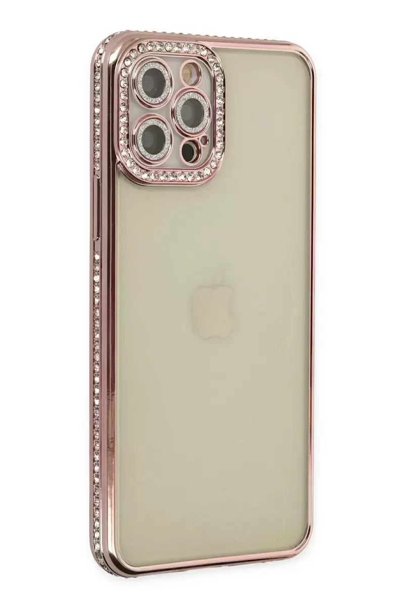 Newface iPhone 12 Pro Kılıf Joke Taşlı Silikon – Pembe