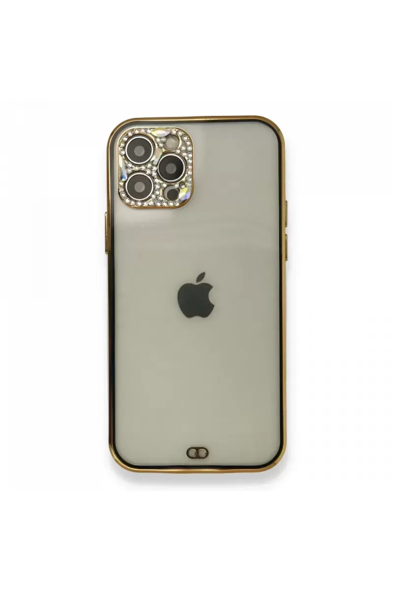 Newface İphone 12 Pro Kılıf Liva Taşlı Silikon – Siyah