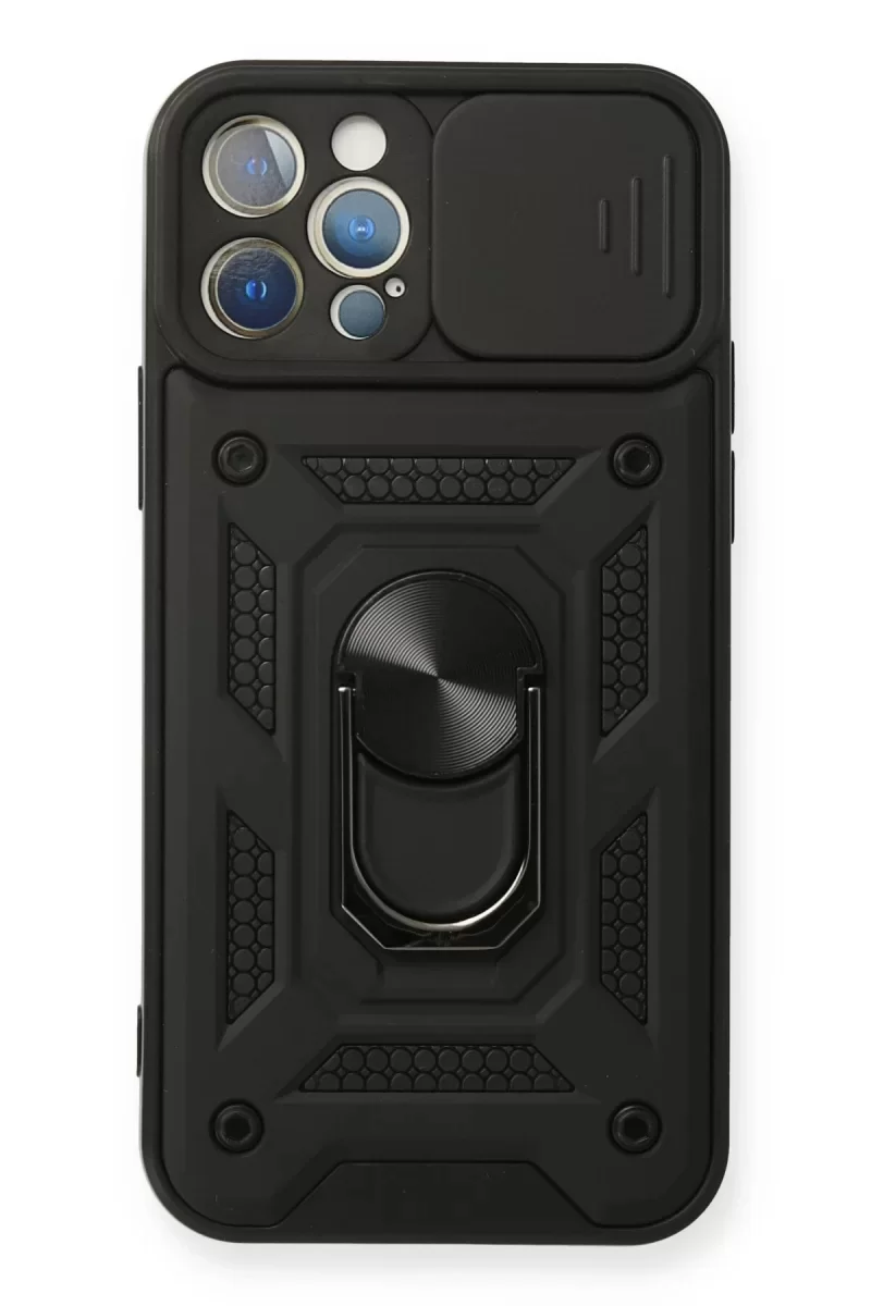 Newface İphone 12 Pro Kılıf Pars Lens Yüzüklü Silikon – Siyah