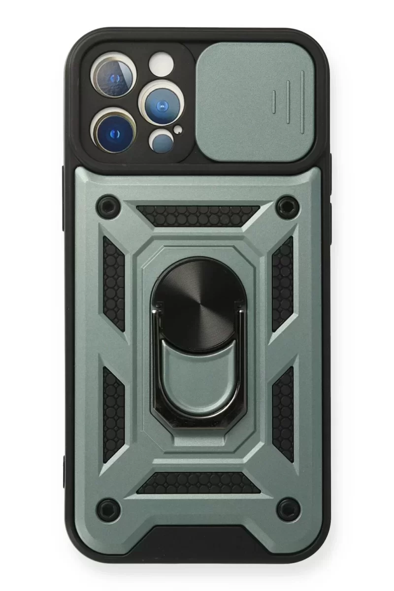 Newface İphone 12 Pro Kılıf Pars Lens Yüzüklü Silikon – Yeşil