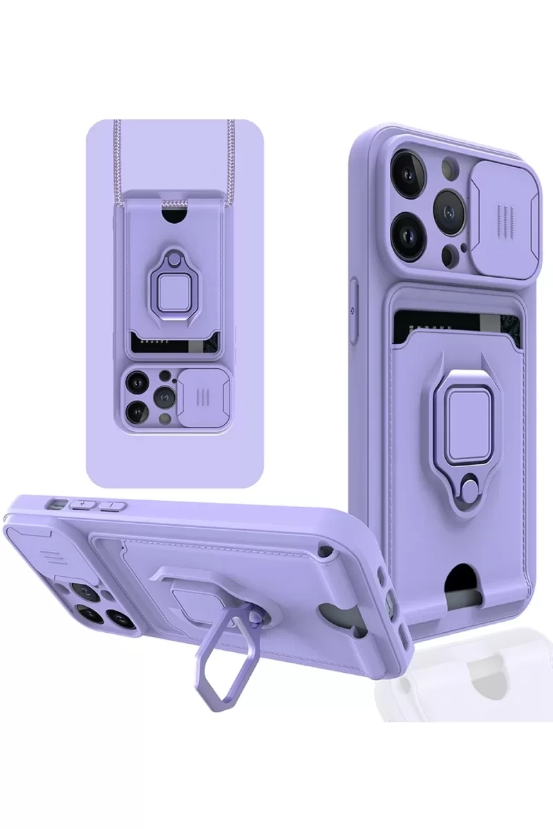 Newface İphone 13 Pro Kılıf Zuma Kartvizitli Yüzüklü Silikon – Lila