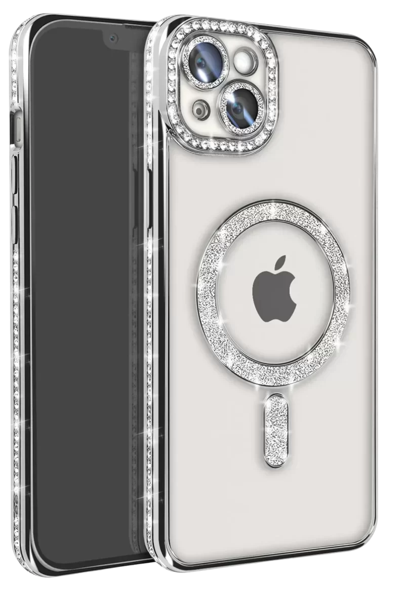 Newface İphone 14 Kılıf Joke Simli Magneticsafe Kılıf – Gümüş
