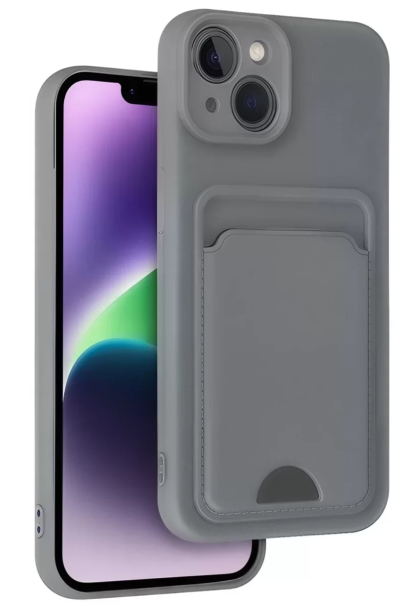 Newface İphone 14 Kılıf Kelvin Kartvizitli Silikon – Gri